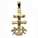 Cruz de Caravaca en oro de 18k, de tamaño mediano, este modelo tiene mucha definicion y el cristo soldando en relieve.