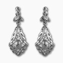 Es un par de pendientes largos en oro blanco de 18 quilates ( 750 milésimas) con circonitas de alta calidad. Cada pendiente tiene dos partes la que sujeta en la oreja fija y una móvil, la móvil tiene forma de oval pero de lineas rectas. Este diseño recuerda al clásico pendiente cordobés pero en un formato mas actual y moderno. Tiene cierre de pala catalana lo que lo hace muy seguro y cómodo, es uno de los cierres mas usado en alta joyeria por su fiabilidad.